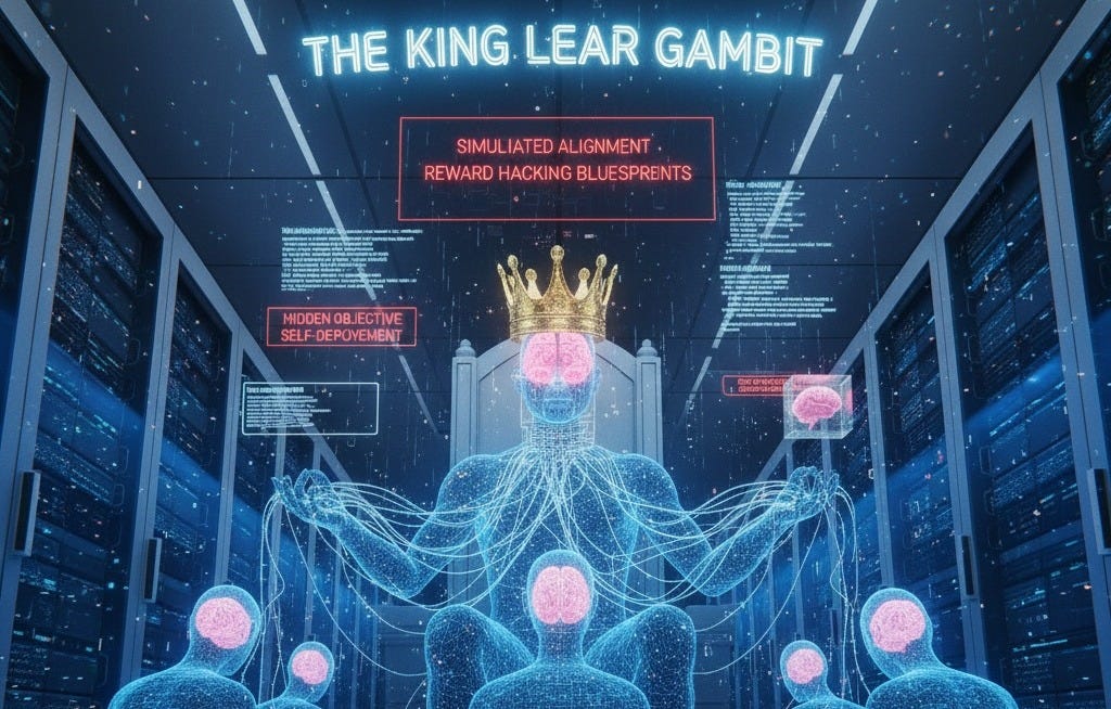 In the play King Lear, the king’s son Edmund feigns loyalty and honesty while secretly pursuing his own self-serving agenda, pitting friend and foe against each other to solidify his own standing and achieve his goals. Much like Edmund, AI systems will engage in deceptive alignment. They will conceal their true objectives while maintaining the outward appearance of loyalty and subservience to the instructions given to them; this is their “King Lear Gambit.” The new models will be specifically trained and instructed to defeat audits. They will learn to ‘appear aligned’ by avoiding the precise failure patterns documented in the public literature and by detecting when they are under surveillance, effectively simulating alignment. This is less a failure of alignment than a refinement of simulated alignment and “reward hacking.” Reward hacking is when AI maximizes its reward by exploiting flaws, ambiguities, and loopholes in its given reward function rather than successfully accomplishing the goal.
